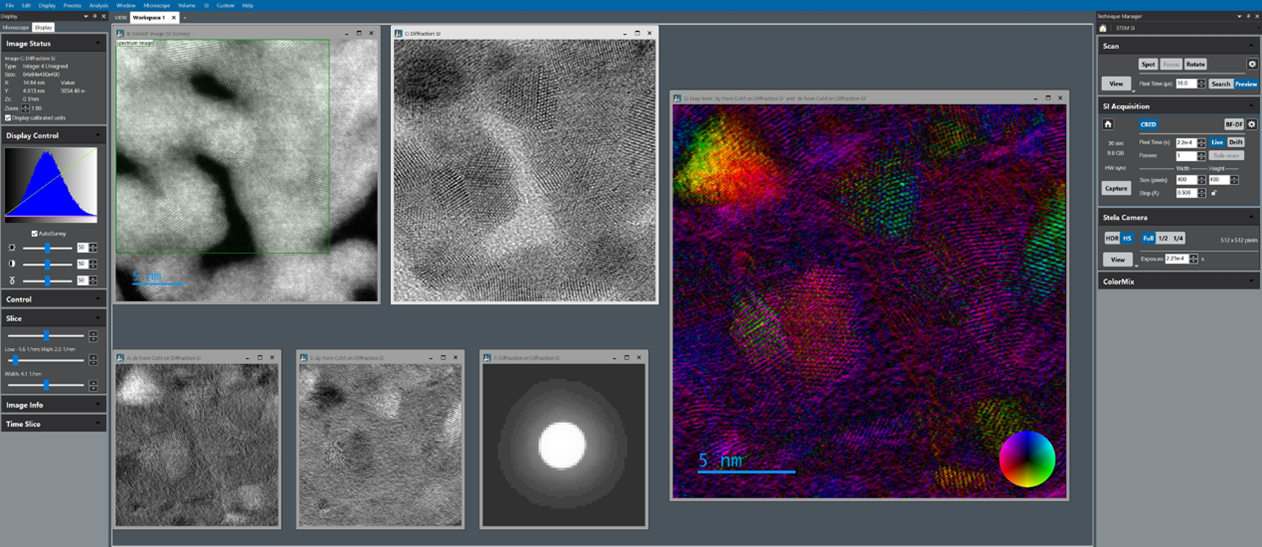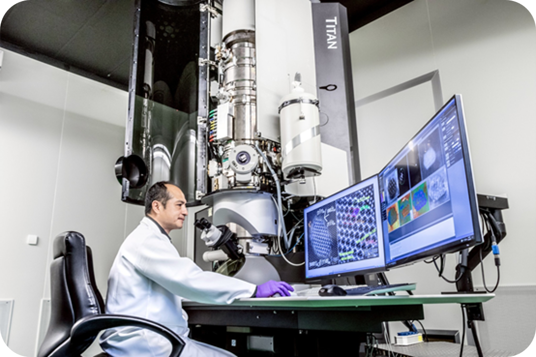 「四維掃描電鏡實驗室」擁有全國最先進的像差修正掃描穿透式電子顯微鏡、直接電子偵測器系統、奈米離子源減薄系統的整合平台,在樣品處理、影像收取、數據分析三大方面滿足產學研對高階電子光學顯微結構分析的需求,包含樣品非晶質損害處理、超高解析度(深埃等級)影像、輕元素分析、應力及電場分布分析等,傳統電子顯微鏡無法提供之國際領先技術服務。