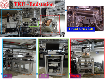 The TKU branch is considerably used for making high photon flux XAS and XES/RIXS measurements. It is therefore designed to have a photon flux of greater than 1×1012 photons/sec. The beam size at the sample is approximately 3μm×3μm (H×V). A high-resolution emission spectrometer-variable line spacing (VLS) grating spectrometer was installed at the TKU end-station. Two gratings (9000 and 18000 lines/cm) were used; the low-density grating covers photon energies from 250 to 500 eV, while the high-density grating covers photon energy up to 1200 eV. The resolving power is optimized at two target photon energies, 285 eV (C) and 640 eV (Mn), and is approximately 5000. As presented in Fig. 2, the TKU end-station provides an in-situ electrochemical and gas/liquid reaction cell and provides unique possibilities for making in-situ XAS and XES/RIXS measurements.